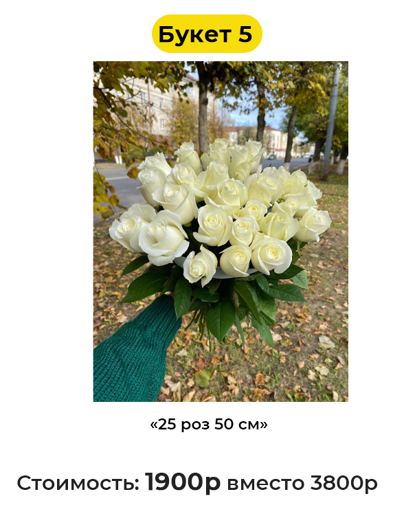 • Букет 5 «25 роз 50 см» - 1900 руб. вместо 3800 руб. (Купон за 349 руб.)