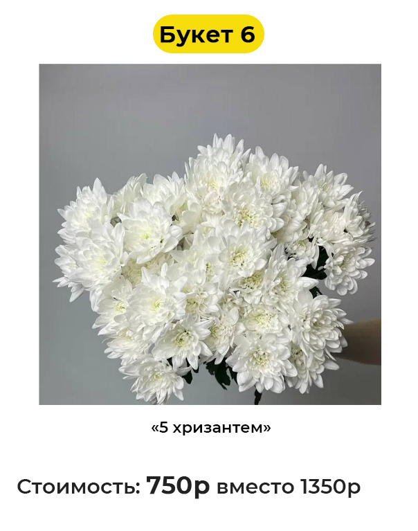 • Букет 6 «5 хризантем» - 750 руб. вместо 1350 руб. (Купон за 89 руб.)