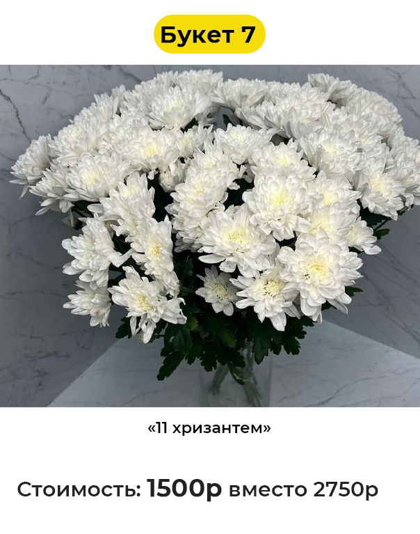 • Букет 7 «11 хризантем» - 1500 руб. вместо 2750 руб. (Купон за 219 руб.)
