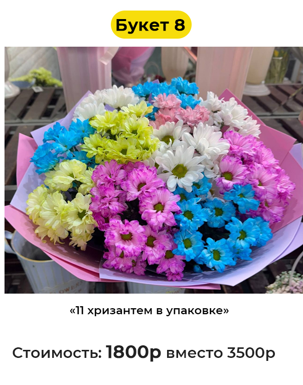 • Букет 8 «11 хризантем в упаковке» - 1800 руб. вместо 3500 руб. (Купон за 299 руб.)